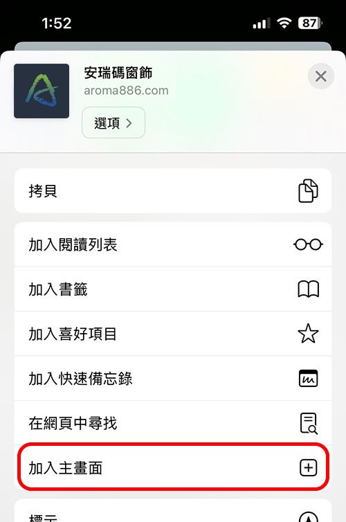 在iPhone,如何將安瑞碼電子型錄加到桌面?